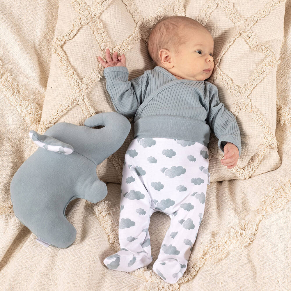 Wygodne i miękkie półśpioszki uszyte z bawełny. Wysoka jakość materiału została potwierdzona certyfikatem Oeko-Tex Standard 100 Tekstylia godne zaufania. Półśpioszki mają luźny fason i lekko obniżony stan by pomieścić pieluszkę, posiadają szeroki, bezuciskowy ściągacz w pasie.
