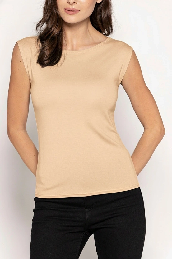 Koszulka z wysokiej jakości materiału ,do noszenia zarówno jako bluzka jak również pod żakiet jako dopełnienie eleganckiego i praktycznego stroju .Powyższy produkt jest wyrobem najwyższej jakości, został zaprojektowany według najnowszych trendów mody. Wiskoza jest materiałem który idealnie dopasowuje się do ciała, ale również jest materiałem przewiewnym i przyjaznym dla skóry. Bluzka idealnie nadaje sie na cieplejsze dni .