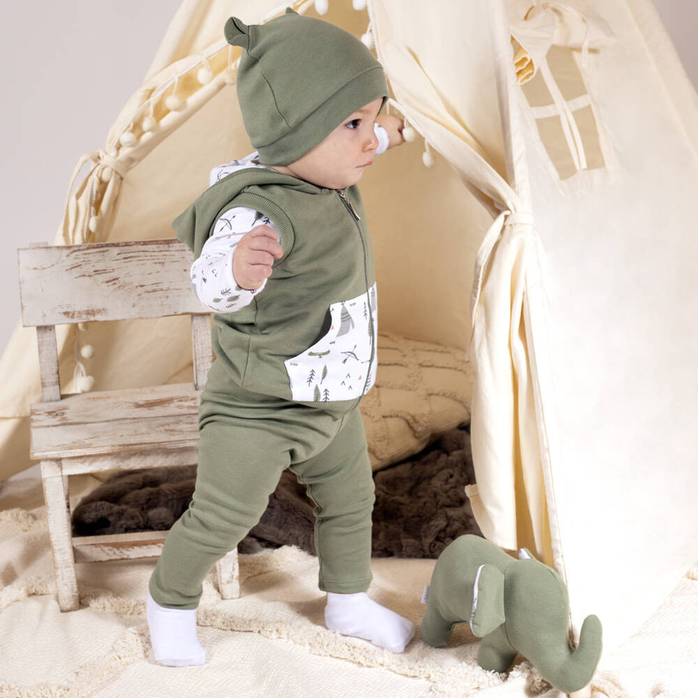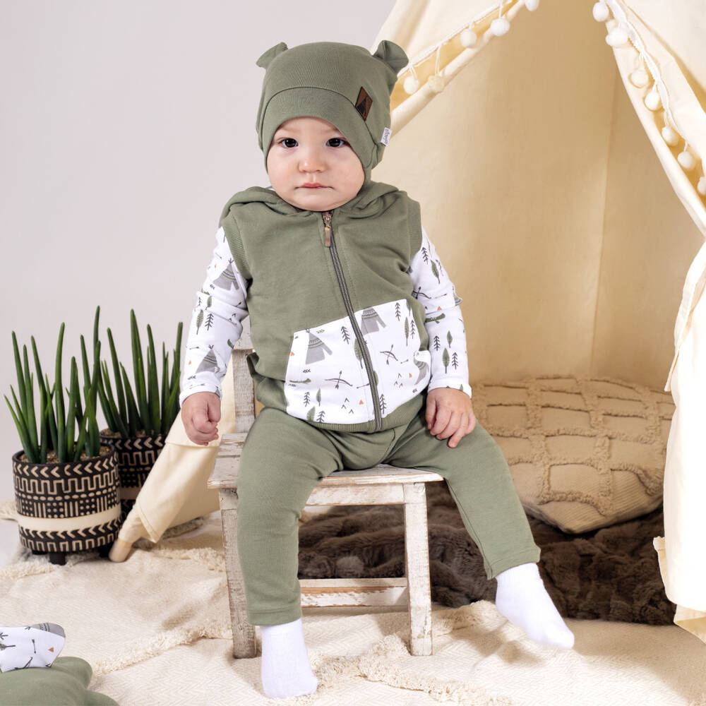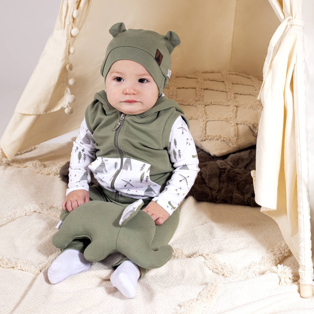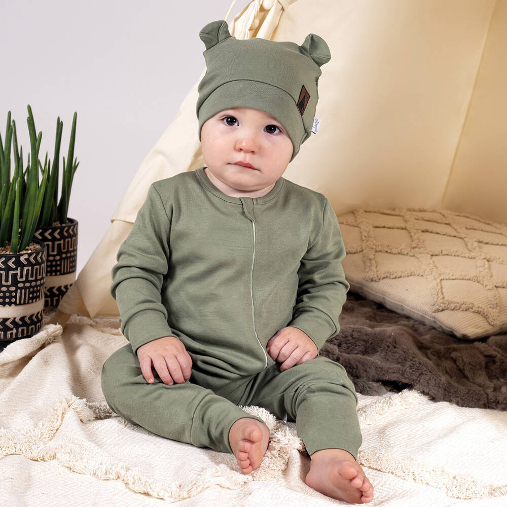 Praktyczna czapka uszyta z drukowanej bawełny. Niewielka ilość elastanu sprawia, że czapeczka będzie lepiej przylegać do główki. W fasonie tym, zastosowano bezuciskowy ściągacz. Czapeczkę zdobią uszka w formie zakładek. Materiał posiada certyfikat Oeko-Tex Standard 100 Tekstylia godne zaufania.