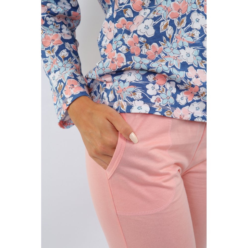 Wygodna i miękka w dotyku piżama z długim rękawem i długimi spodniami. Delikatny wzór kwiatowy na koszulce z kieszonką, oraz pastelowe spodnie z kieszeniami nadają piżamie szykuPastelowe kolory nadają piżamie ponadczasowy charakter, a przemyślany krój zapewnia komfort użytkowania i sprawia, że wygląda wspaniale na każdej sylwetce. Idealna do spania i jako praktyczny strój domowy.