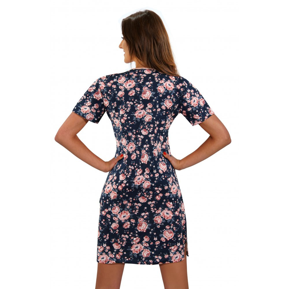 2508/05 Róże Angielskie Koszula nocna krótki rękaw Sesto Senso granatowy