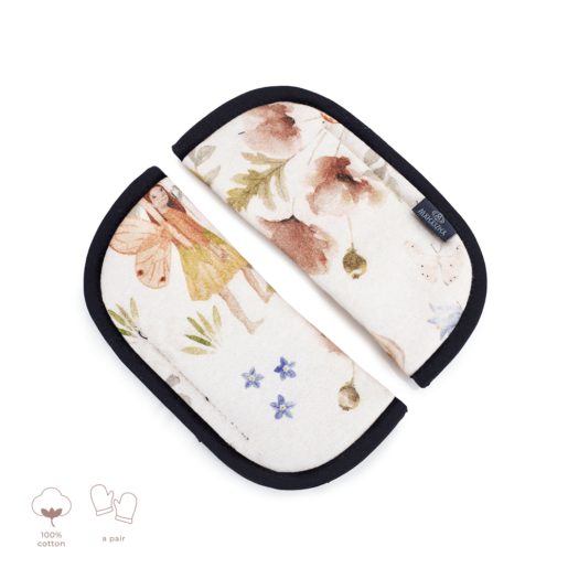 Wewnętrzna część osłonek wyposażona jest w ukryte zapięcie na rzep, a wypełnienie z antyalergicznej, lekkiej silikonowej włókniny gwarantuje miękkość i ochronę przed twardymi pasami samochodowymi czy wózkowym.