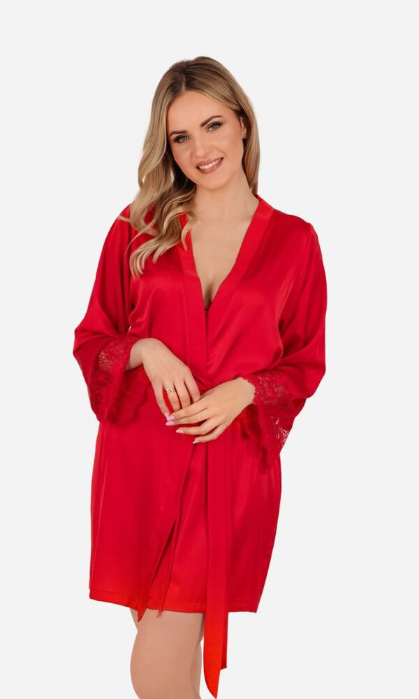 Patricia Szlafrok damski satynowy ByShelly - czerwony