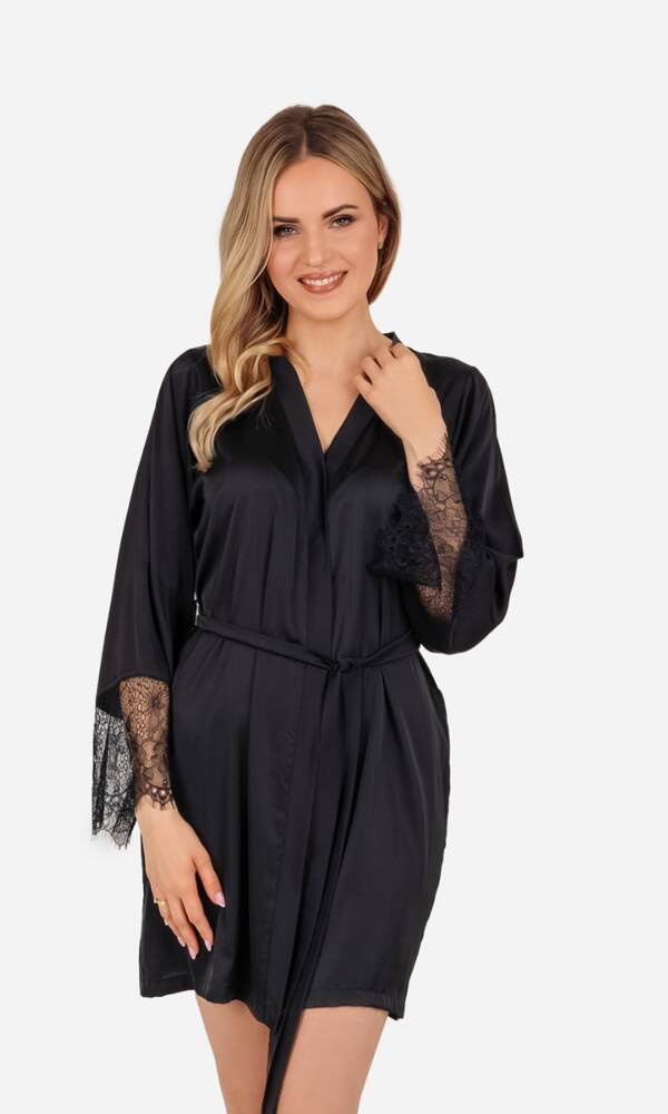 Patricia Szlafrok damski satynowy ByShelly - czarny