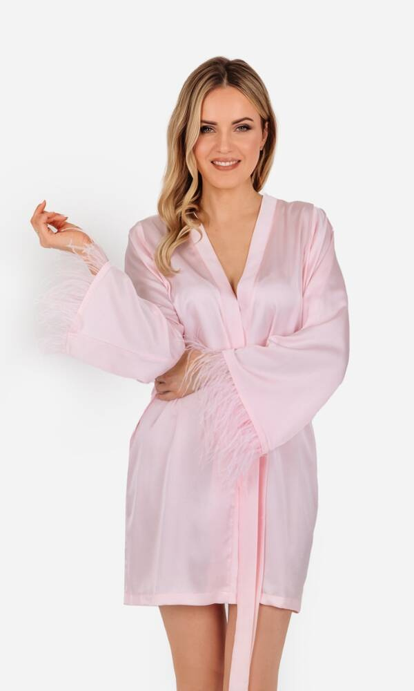 Marie Szlafrok damski satynowy ByShelly - pudrowy róż