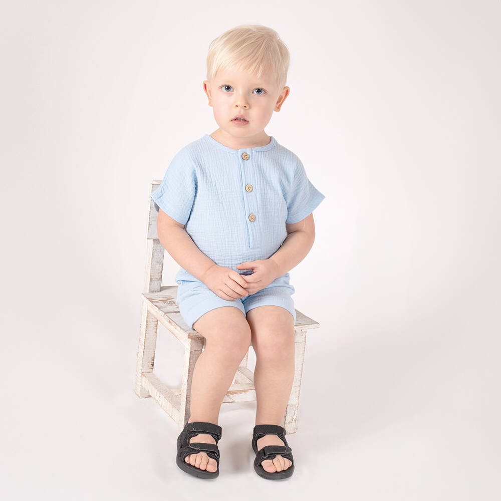 Wykonana ze 100% bawełny bluzka. W modelu na tyle zastosowano zapięcie typu łezka, zapinane na bezniklowego napa.
