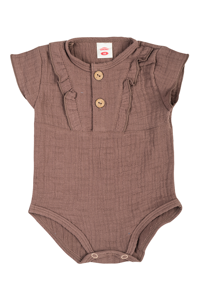 03252GKRC "Bamboo Muslin Girl Choco" Body krótki rękaw muślinowe Makoma