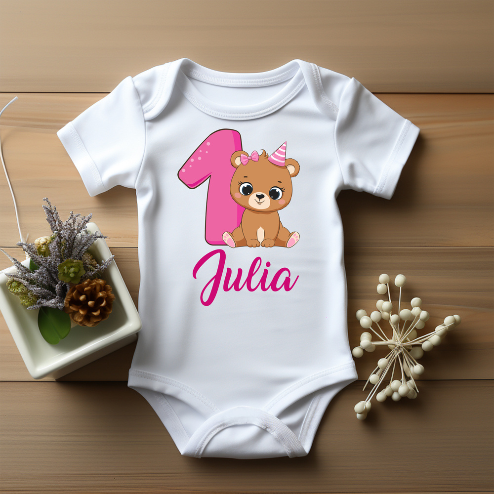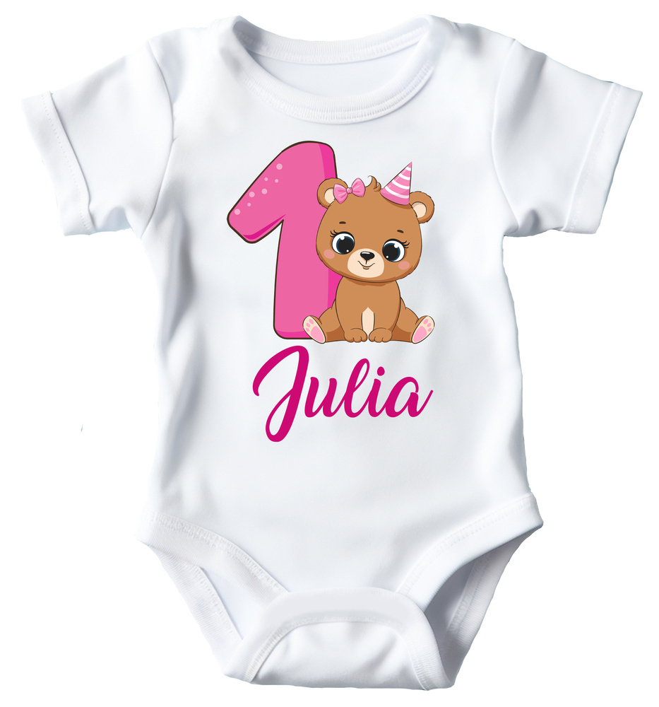 "1 urodziny ROCZEK różowa jedynka" Moocha Body krótki rękaw biały