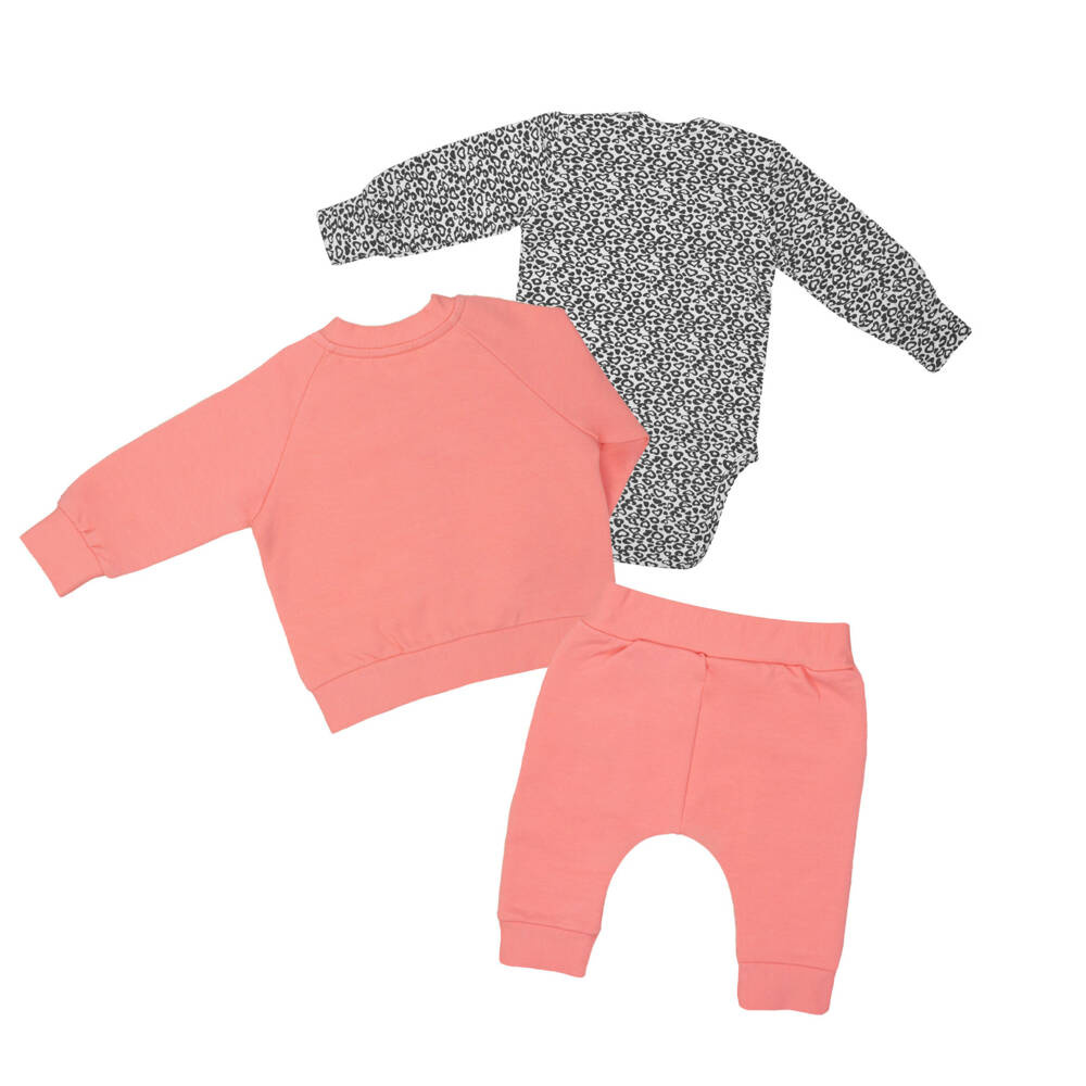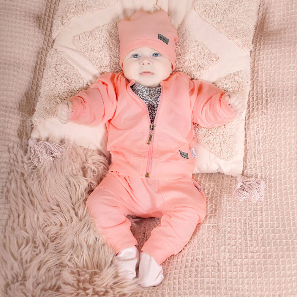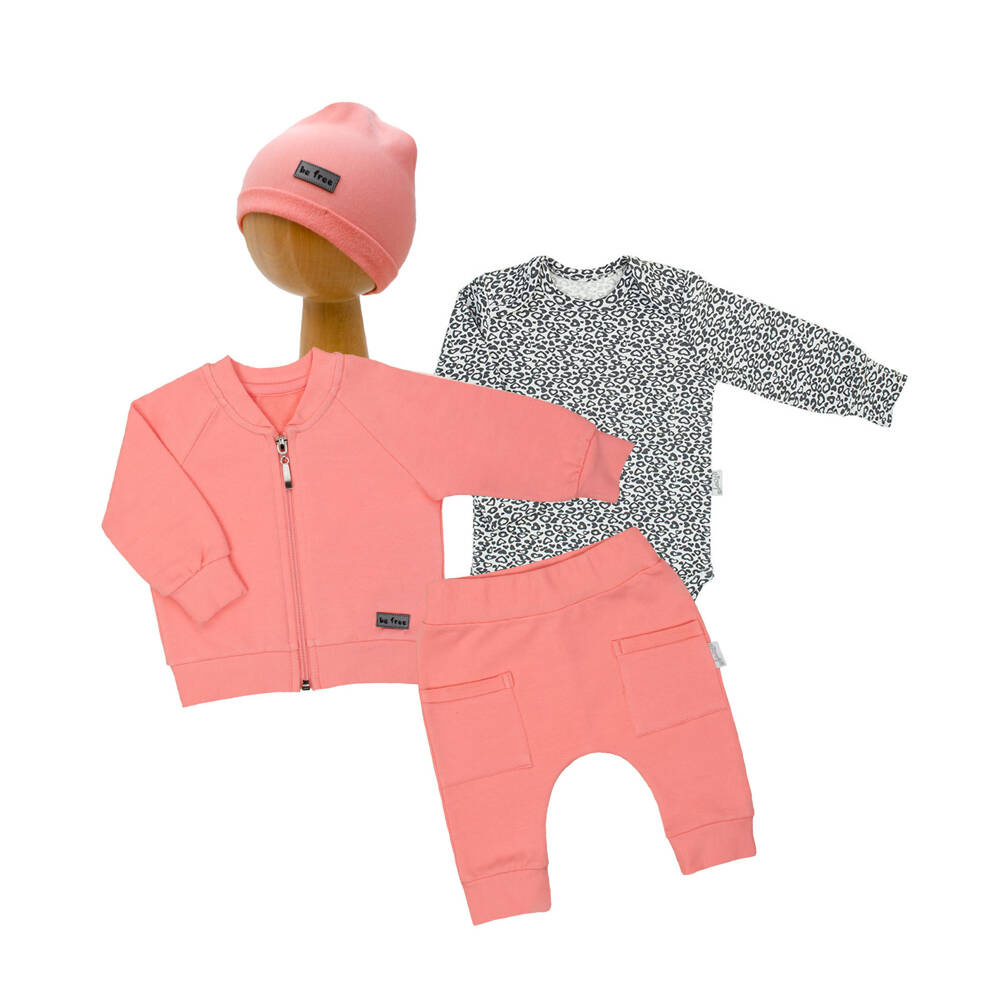 Zestaw wyprawkowy, który składa się z body, bluzy, spodni i czapki. Ubranka z 100% bawełny.