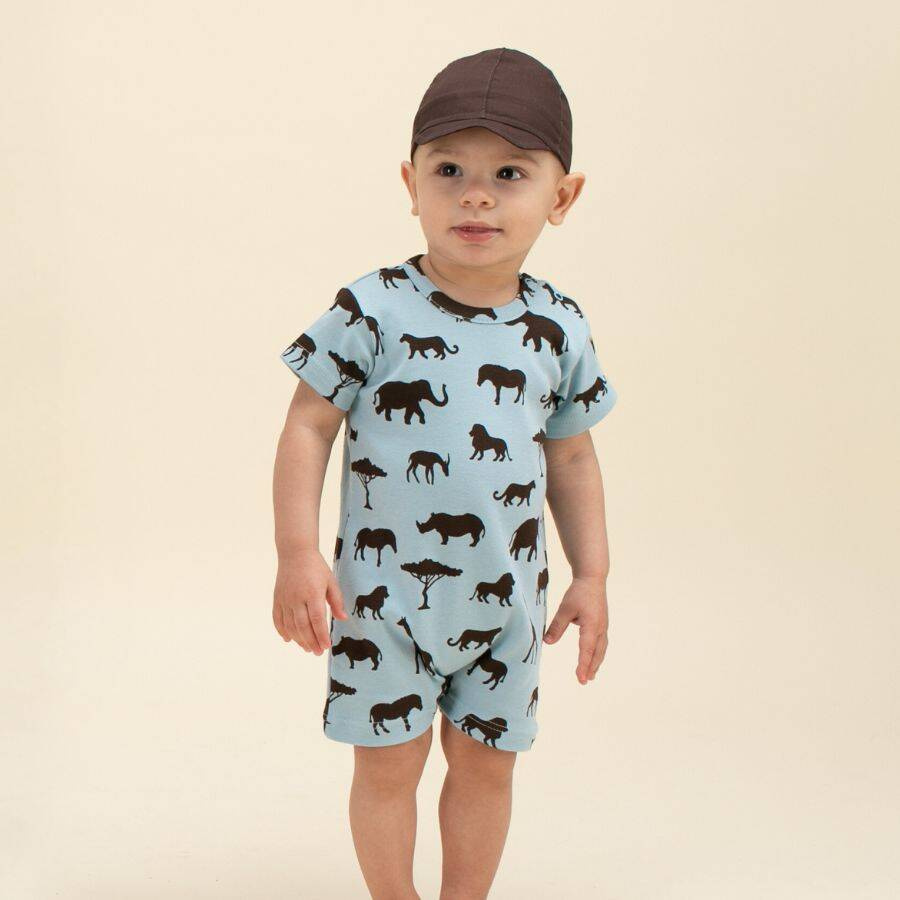 Safari Pinokio Rampers niemowlęcy - afryka niebieski