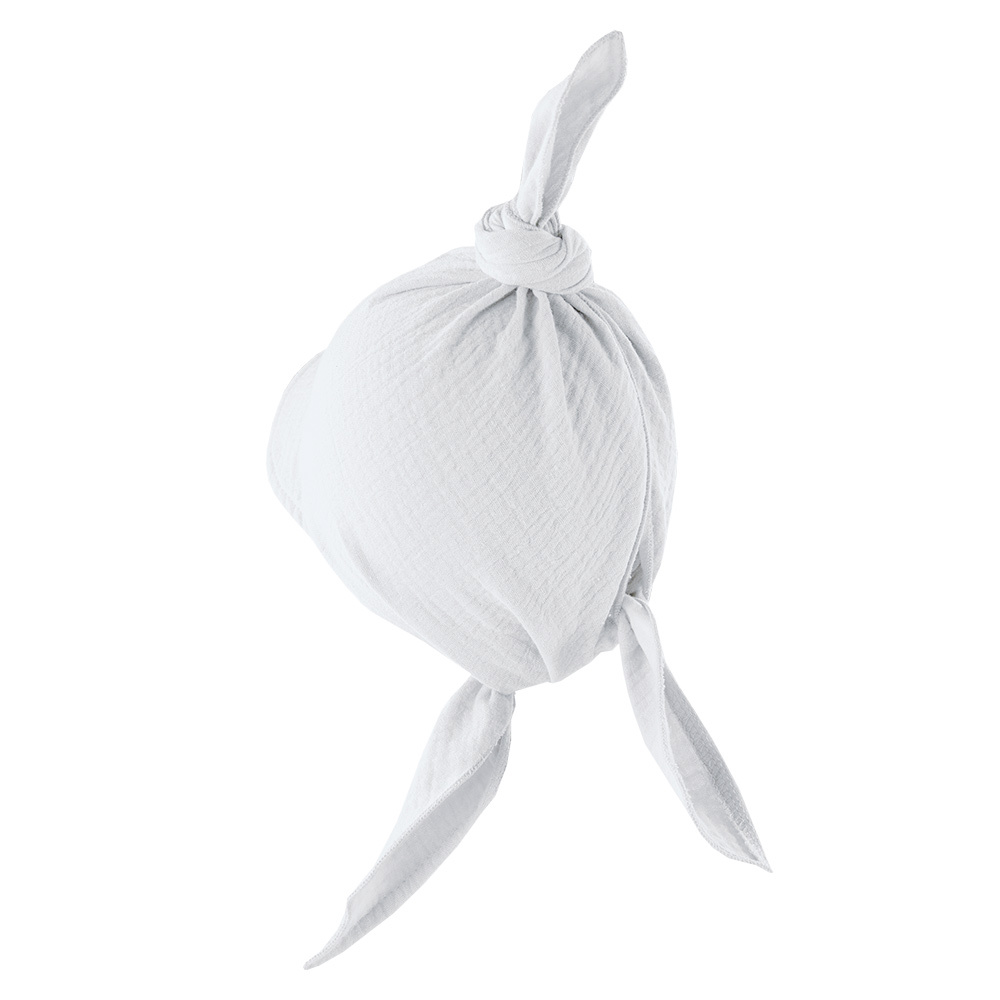 Chustka z daszkiem uszyta z miękkiej i przyjemnej w dotyku tkaniny muślinowej. Chustkę można wiązać na dwa sposoby, które ukazane są na zdjęciu produktowym. Warto wybrać takie nakrycie które będzie wygodne, ale również i bezpieczne dla delikatnej skóry dziecka. Uniwersalny krój dopasowany jest do głowy zarówno noworodka jak i dziecka do 4 roku życia.