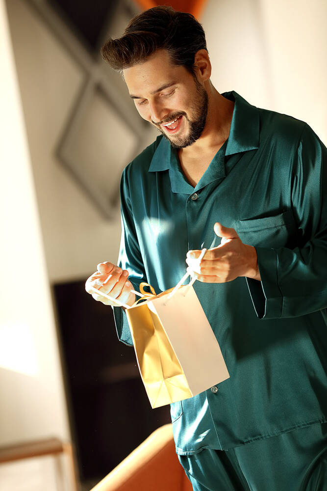 Wyjątkowo wygodna piżama męska wykonana z najwyższej jakości satyny premium, jest niezwykle przyjemna w dotyku, a jednocześnie prezentuje się luksusowo i stylowo.