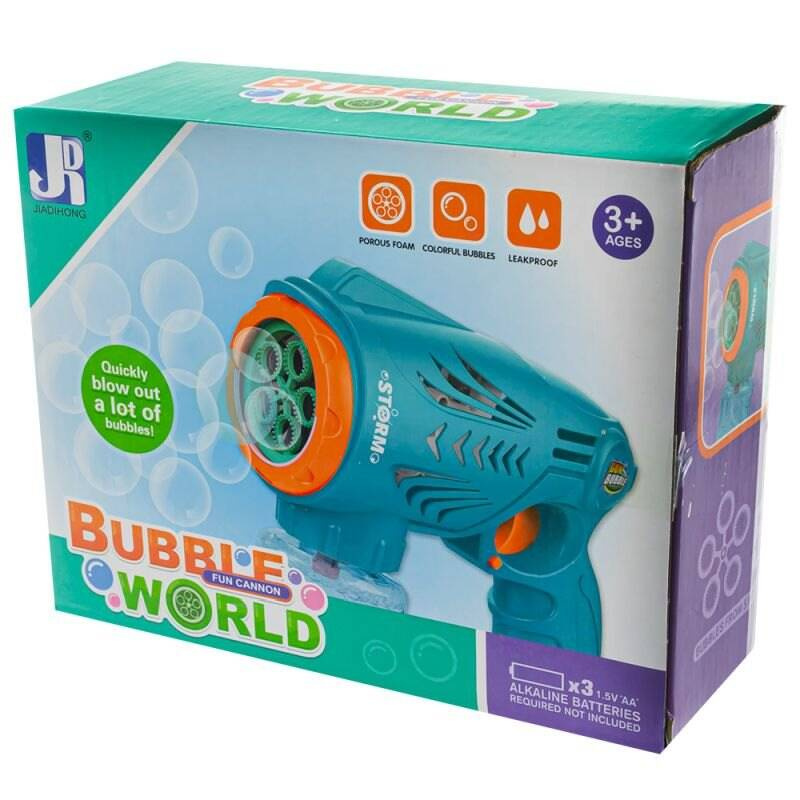 Zestaw do produkcji baniek mydlanych zasilany bateriami. Produkcja baniek, uwielbianych przez dzieci nie była taka prosta, wystarczy założyć pojemnik z płynem i nacisnąć guzik a bańki zaczną się produkować automatycznie. Zestawy ma możliwość ciągłej produkcji baniek lub po naciśnięciu guzika. Ergonomiczna konstrukcja pozwala w łatwy sposób posługiwać się zabawką.
