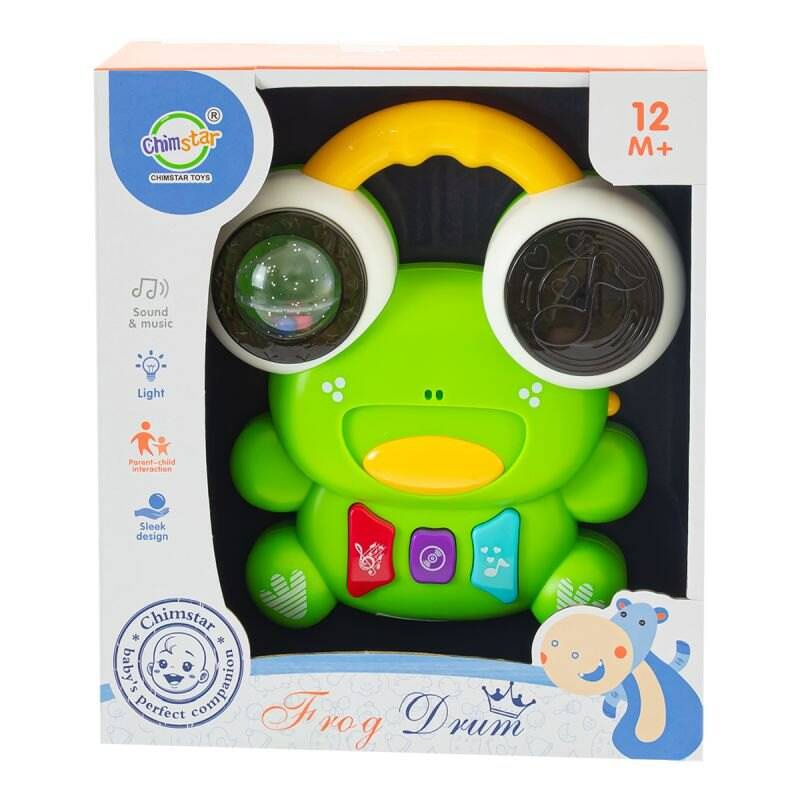 Grająca żabka pozwoli ukoić Twoje dziecko poprzez przyjemne dla ucha melodie, a także grzechotce, która jest wewnątrz. Nauczy malucha rozróżniania różnych odgłosów zwierząt oraz utuli do spania z kołysankami.