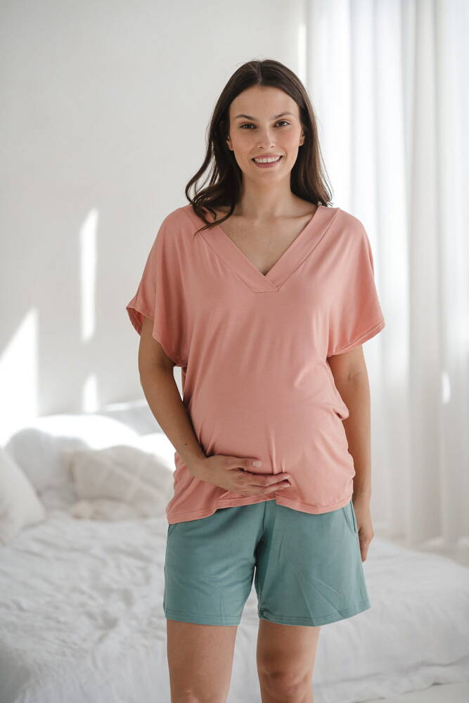 Moon bambusowe spodnie od piżamy ciążowej krótkie Milk&Love eukaliptus