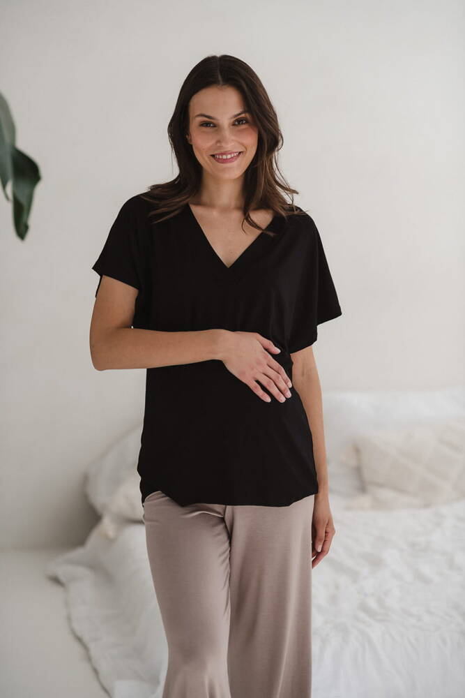 Moon bambusowa bluzka od piżamy ciążowej do karmienia krótki rękaw Milk&Love czarny