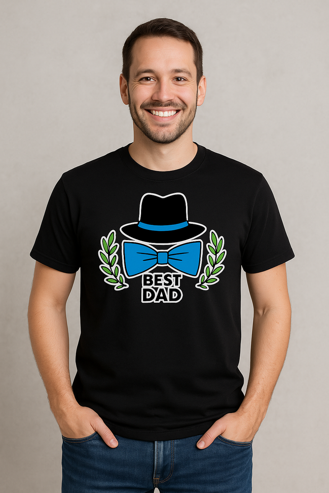 "Best dad z kapeluszem i muszką" Moocha koszulka męska czarny