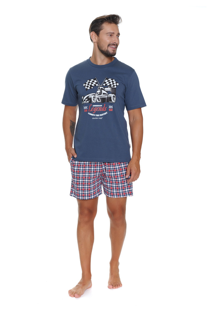 Piżama męska wykonana z wysokiej jakości miękkiej bawełny. Model o klasycznym kroju. Koszulka z krótkim rękawem, dekolt półokrągły. Spodnie krótkie, wzorzyste, wykończone komfortową gumką w pasie. Spodoba się najbardziej wymagającym mężczyzną.