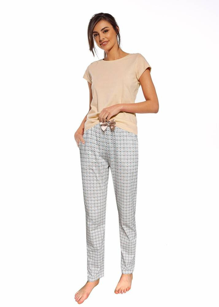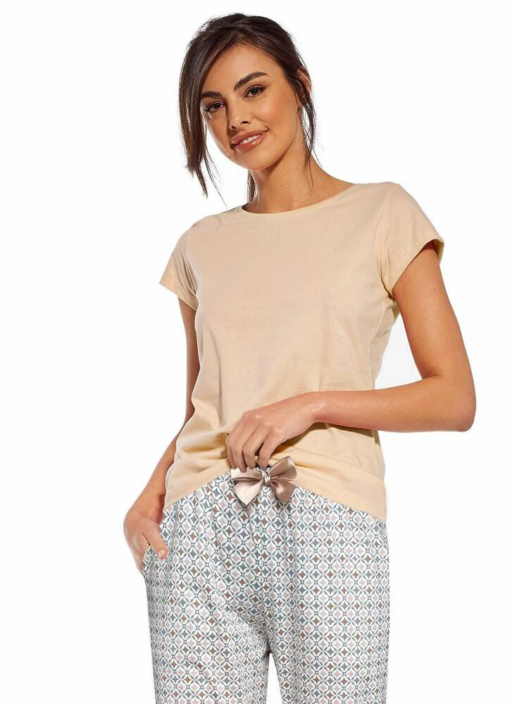 Wygodna piżama damska wykonana z wysokiej jakości wyjątkowo miłej i miękkiej bawełny. Koszulka z krótkim rękawem, dekolt okrągły.
