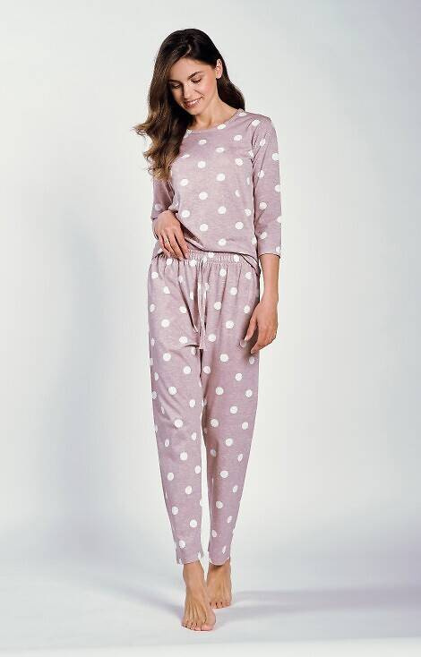 Piżama damska uszyta z wysokiej jakości bawełny. Koszulka z rękawem 3/4 , dekolt półokrągły.
