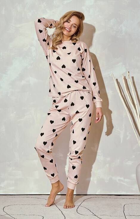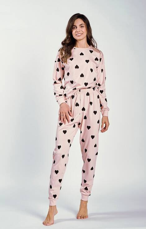 Piżama damska uszyta z wysokiej jakości bawełny. Koszulka z długim rękawem, rękawy zakończone ściągaczem.