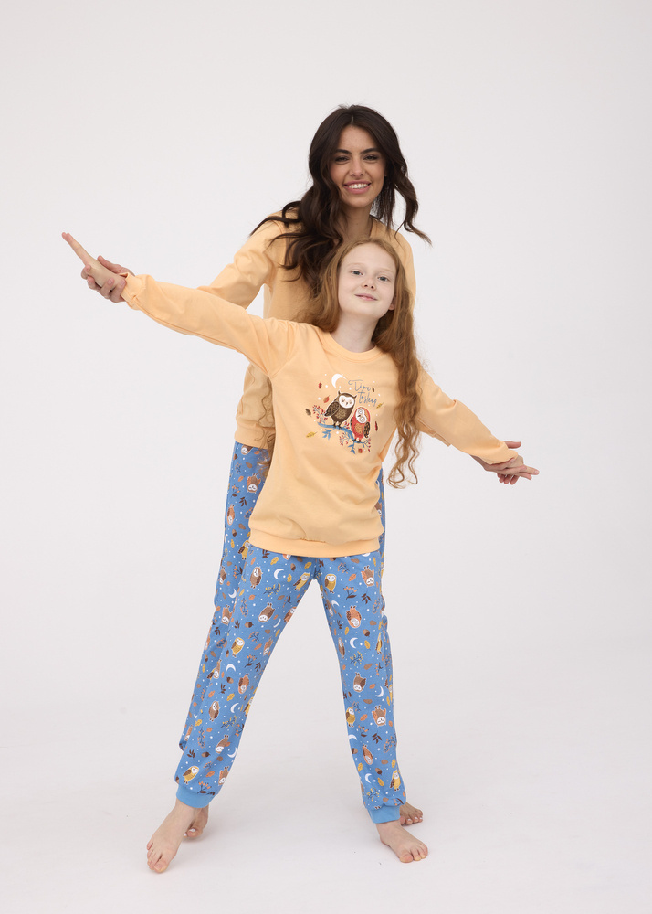 Wygodna piżama damska wykonana z wysokiej jakości wyjątkowo miłej i miękkiej bawełny. Bluzka z długim rękawem, zakończonym ściągaczem, dekolt okrągły, na wysokości klatki piersiowej delikatny nadruk. Do kompletu wzorzyste długie spodnie, nogawki zakończone ściągaczem. Pakowana w pudełko.
