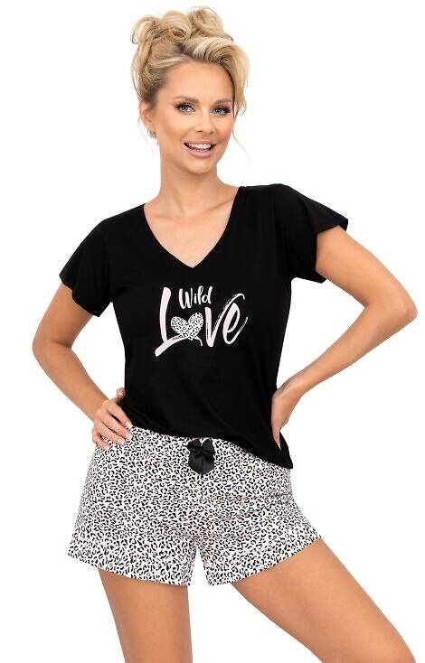 Letnia piżama damska z delikatnej bawełny. Koszulka z krótkim rękawem i dekolt w kształcie litery "V". Spodenki krótkie , wzór w panterkę.