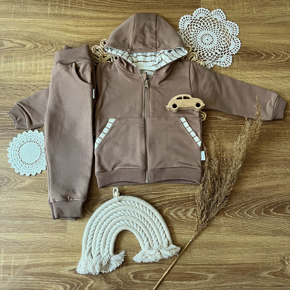 Komplet dziecięcy dresowy w delikatnym kolorze.