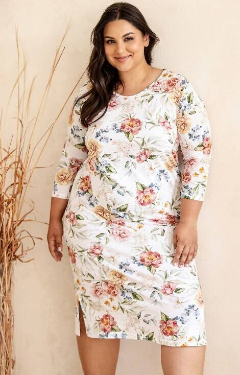 3263 Louisa Koszula nocna Taro-biały kwiaty