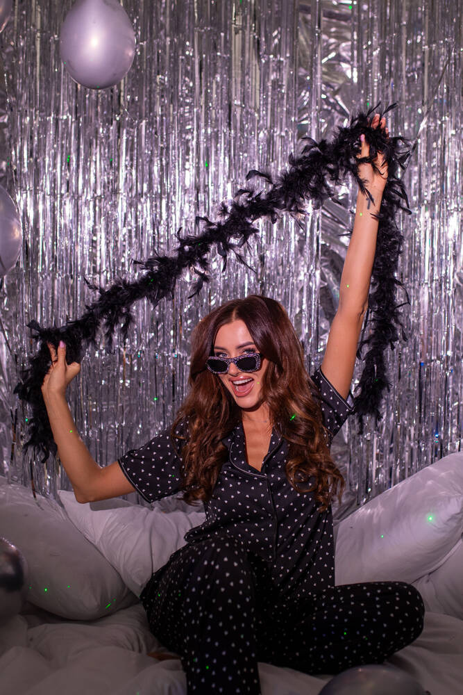 Delikatna satynowa piżama damska to coś dla kobiet, które chcą dodać wyjątkowego charakteru swojej nocnej kolekcji. Luźny, prosty fason zapewnia komfort użytkowania. Jest to piżama damska rozpinana na całej długości, posiada wygodne napy. Dekolt wykończony został subtelnym kołnierzykiem. Spodnie posiadają wygodną, nieuciskającą gumę, która zapewnia perfekcyjne dopasowanie do sylwetki. Elegancka piżama damska urozmaicona została również modnymi serduszkami. Dodajmy, że jest to piżama satynowa, która stanowi świetny wybór dla kobiet lubiących eksperymentować z modą.