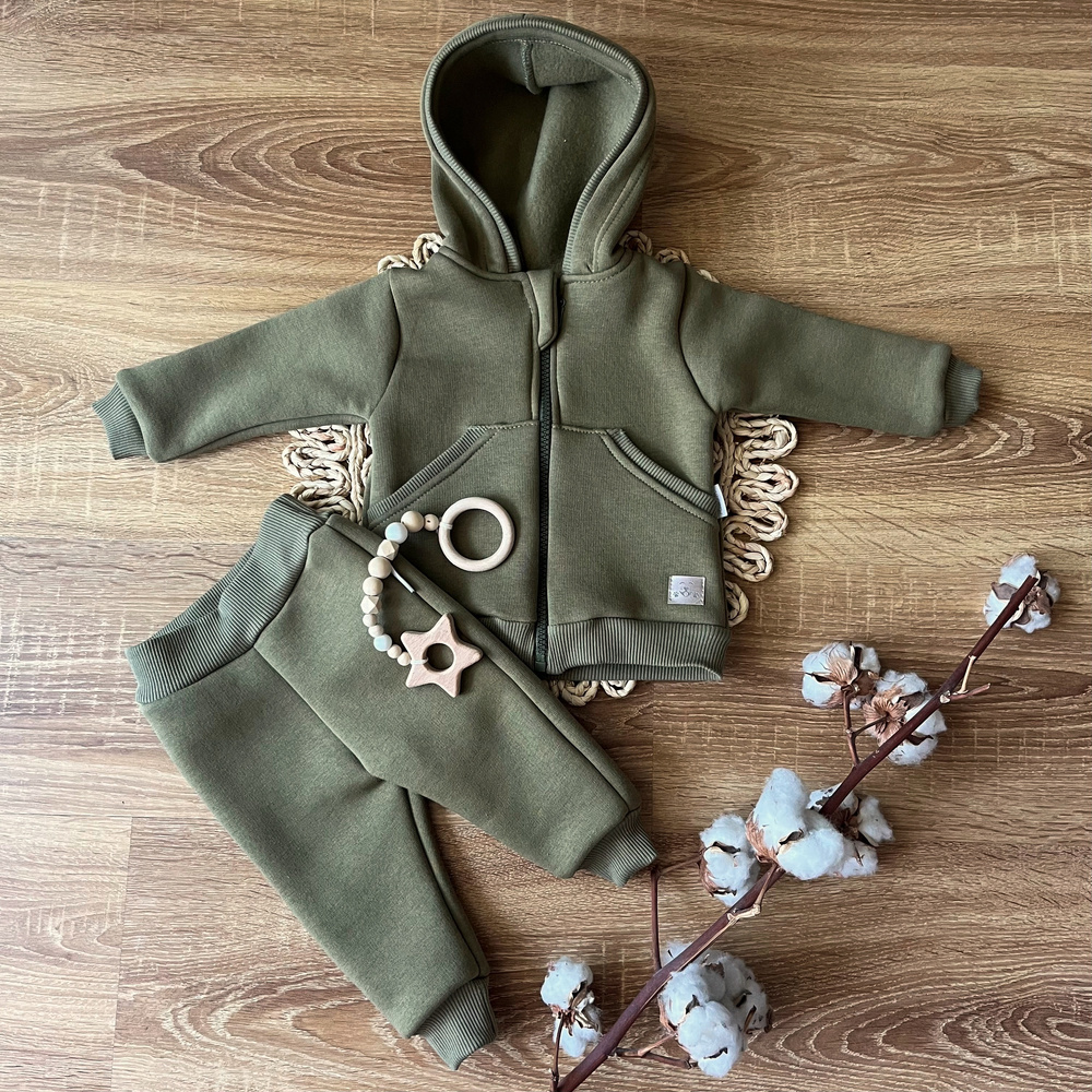 Komplet dziecięcy dresowy w delikatnym kolorze.