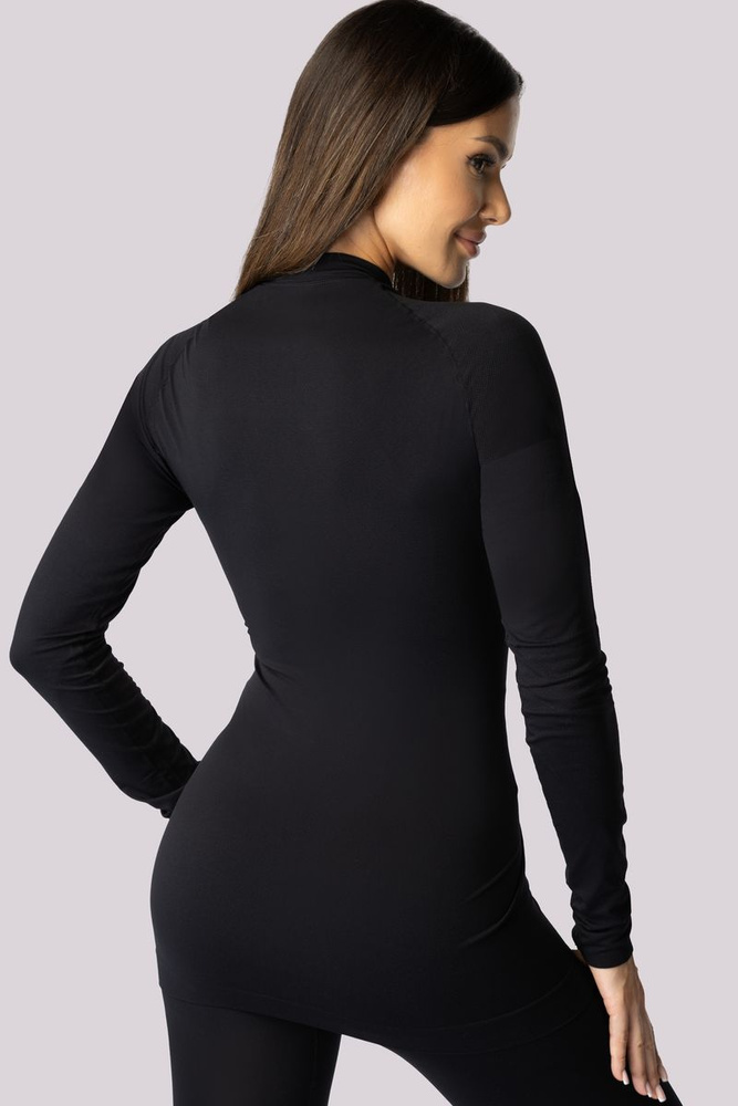 Koszulka termoaktywna z długimi rękawami i stójką. Wykonana w technologii bezszwowej z lekkiego, szybkoschnącego materiału dwuwarstwowego. Zapewnia komfort termiczny. Skutecznie odprowadza nadmiar wilgoci z powierzchni skóry. Przewiewne panele w miejscach o zwiększonej potliwości gwarantują doskonałą cyrkulację powietrza. Stójka przy kołnierzu dodatkowo chroni przed wiatrem i zapewnia lepsze przyleganie.