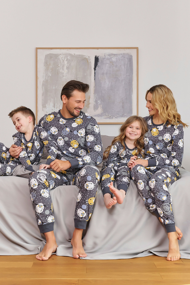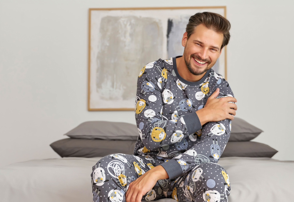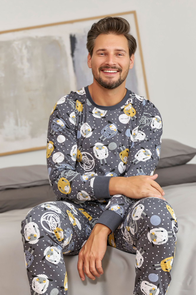Piżama męska wykonana z wysokiej jakości miękkiej bawełny. Model o klasycznym kroju. Koszulka z długim rękawem, dekolt półokrągły. Spodnie długie, wzorzyste, wykończone komfortową gumką w pasie. Spodoba się najbardziej wymagającym mężczyzną.