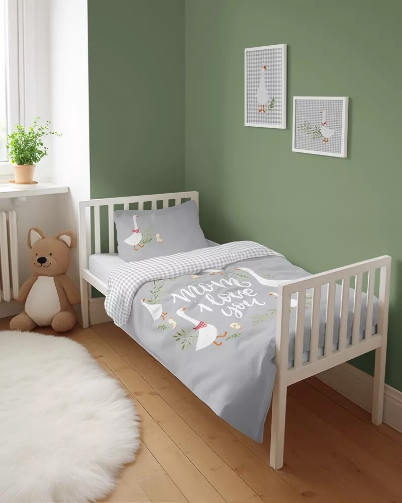 Estetyczny komplet utrzymany w przyjemnej dla dziecka, spokojnej tonacji barw. Kolorowa, bardzo starannie i dokładnie wykończona. Przyjemna w dotyku, nie podrażnia skóry, wprawia w przyjemny nastrój przed snem i po obudzeniu. Dwustronna poszwa na kołdrę dodatkowo urozmaici wygląd sypialni Twojej pociechy.