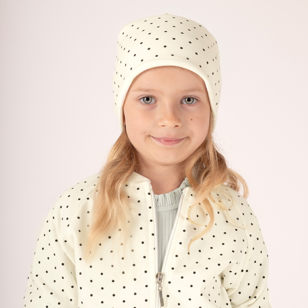 Czapka z kolekcji Lizy. Doskonale nadaje się jako czapeczka na przyjemne, wiosenne dni. Wykonany z miękkiej i przyjemnej bawełny, która doskonale rozciąga się i dostosowuje się do główki dziecka.