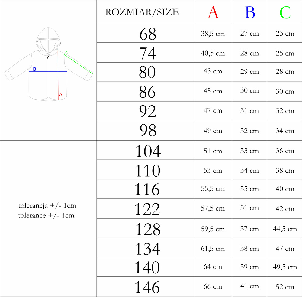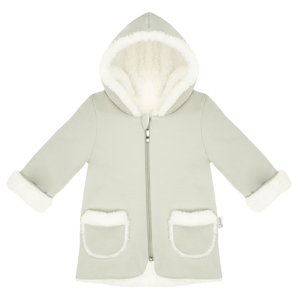 Płaszczyk wykonany z bawełny. Ubranko idealnie nadaje się na chłodne dni. Całość zdobi kaptur oraz kieszonki. Materiał jest całkowicie bezpieczny dla skóry dziecka.