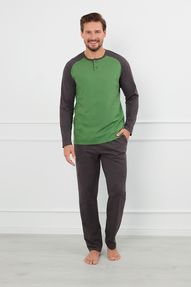 Aleksander Piżama Męska długi rękaw, długie spodnie Italian Fashion - zielony/c.melanż