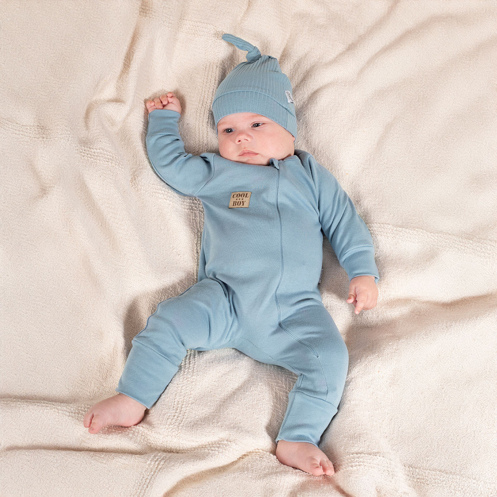 Praktyczna czapka uszyta z prążkowanej bawełny. Niewielka ilość elastanu sprawia, że czapeczka będzie lepiej przylegać do główki. W fasonie tym, zastosowano bezuciskowy ściągacz. Czapeczkę zdobią uszka w formie zakładek. Materiał posiada certyfikat Oeko-Tex Standard 100 Tekstylia godne zaufania.