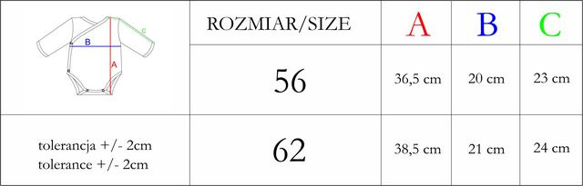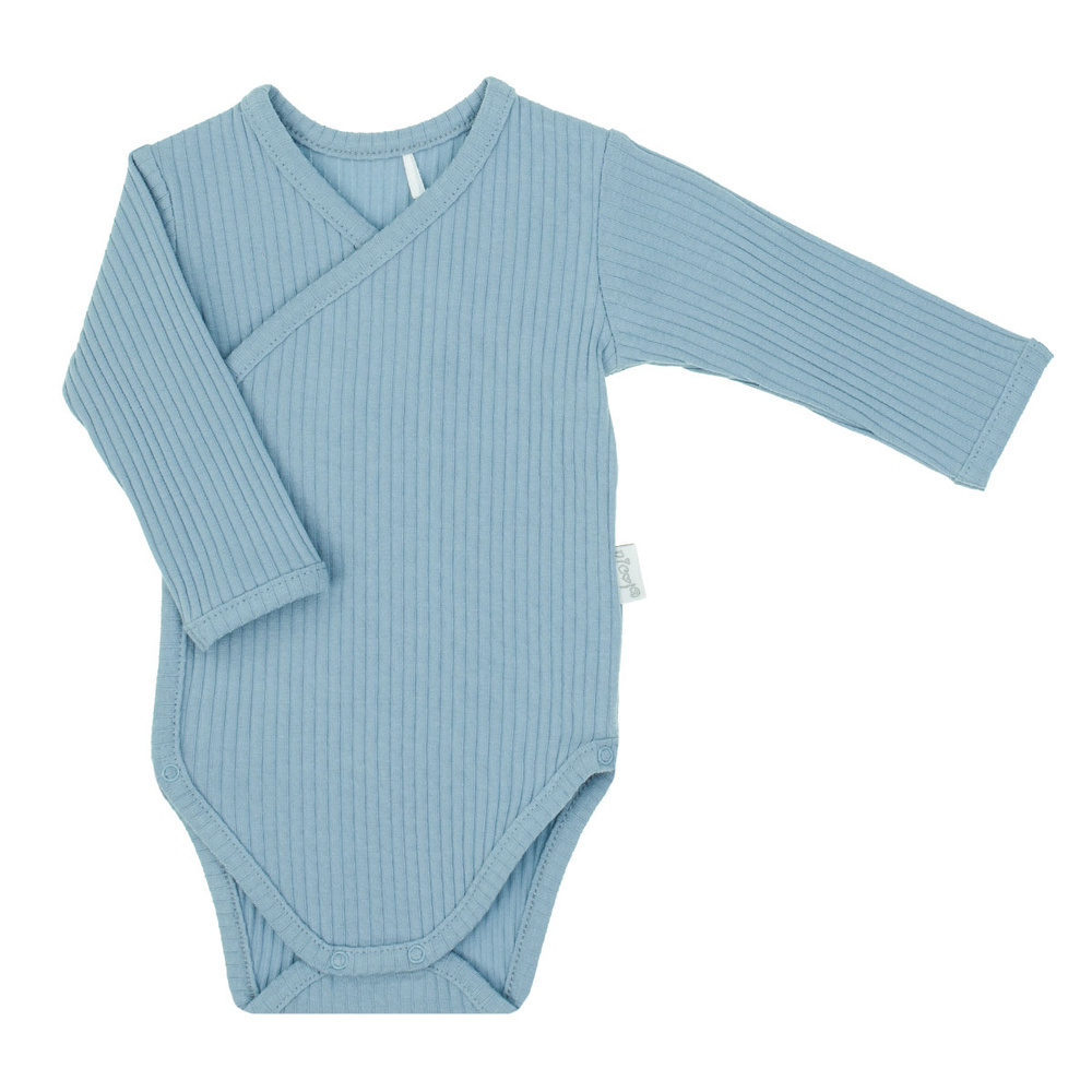 Kopertowe body z długim rękawem, uszyte z bawełny prążkowanej. Produkt jest zapinany na bezniklowe napy. Model ten polecany jest dla noworodków, ponieważ zastosowane zapięcie ułatwia ubieranie dziecka. Materiał posiada certyfikat Oeko-Tex Standard 100 Tekstylia godne zaufania.