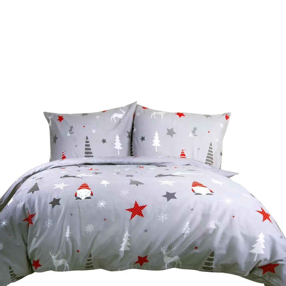 31508/1 Pościel flanelowa świąteczna gwiazdki drzewa Darymex szary