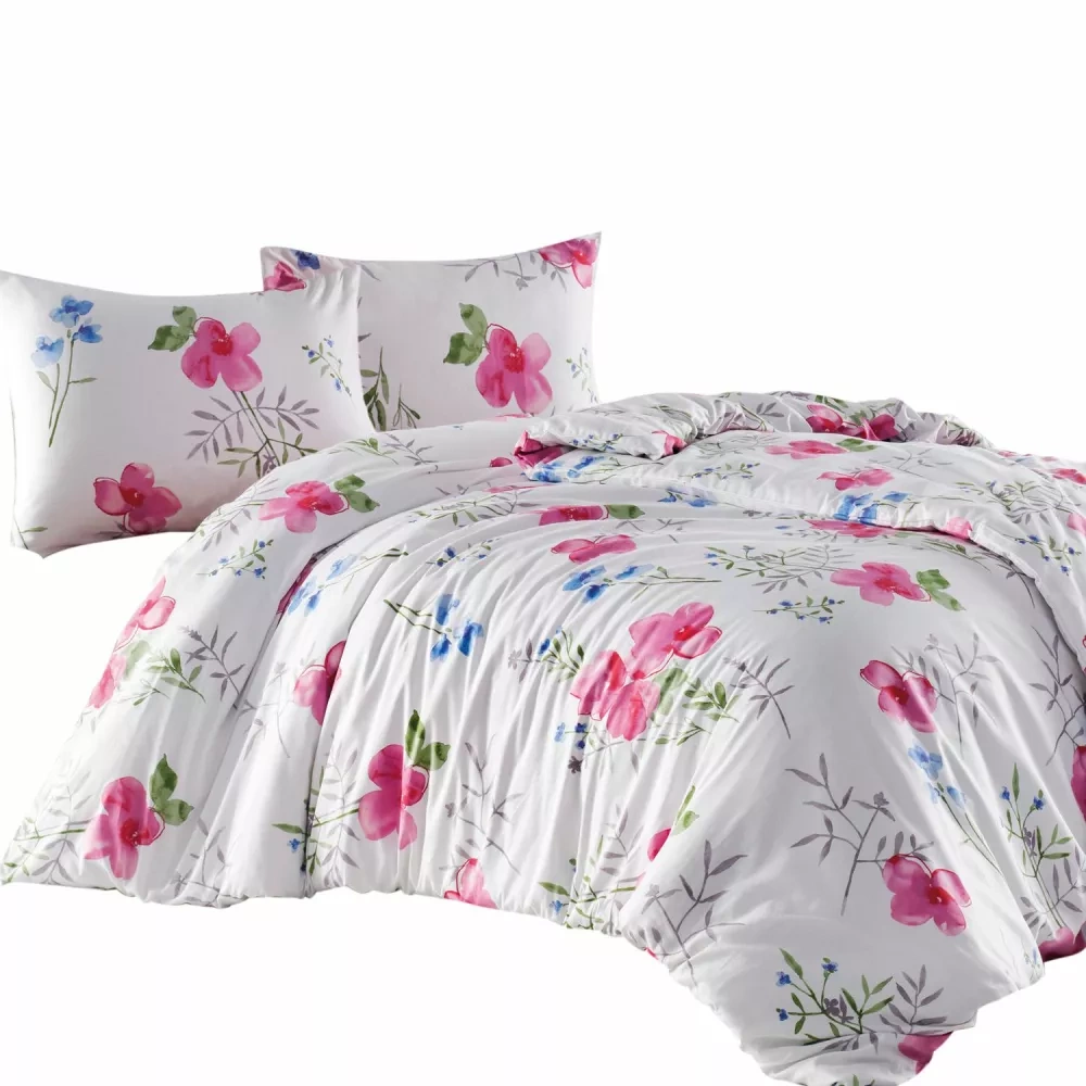 31504/2 Pościel flanelowa kwiaty Darymex biały/róż
