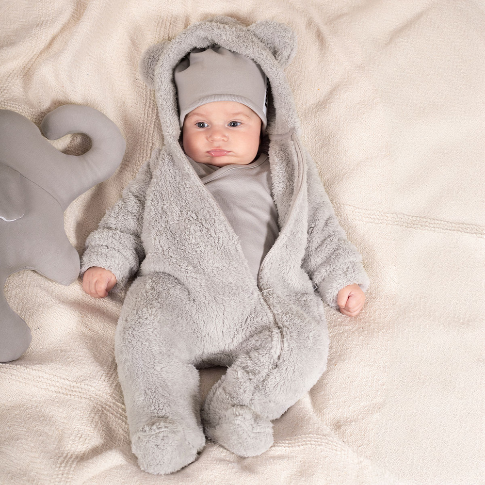 Mięciutki kombinezon rozpinany na suwaczek po całości. Kombinezon zapewni bobasowi odpowiednią ochronę przed chłodem podczas spacerów, a do tego sprawi, że maluszek będzie się świetnie prezentować.