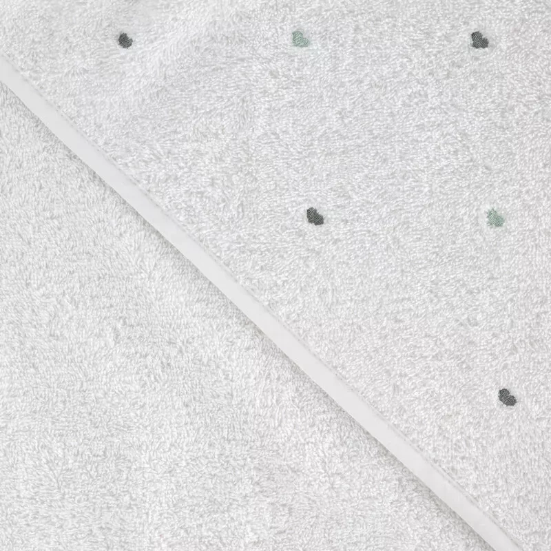 Okrycie kąpielowe wykonane z doskonałej jakości 100% bawełny. Zapewnia niezrównany komfort i chłonność. Dzięki obszernemu kapturkowi, okrycie idealnie chroni delikatną główkę dziecka po kąpieli. Można używać go jako kocyka lub maty do zabawy. Tkanina jest niezwykle miękka i przyjemna w dotyku, nie powoduje podrażnień nawet na wrażliwej skórze malucha. Dodatkowo, ręcznik został starannie obszyty bawełnianą lamówką, a kapturek ozdobiony jest aplikacją, która pobudza wyobraźnię malucha, co nadaje mu elegancki wygląd.
