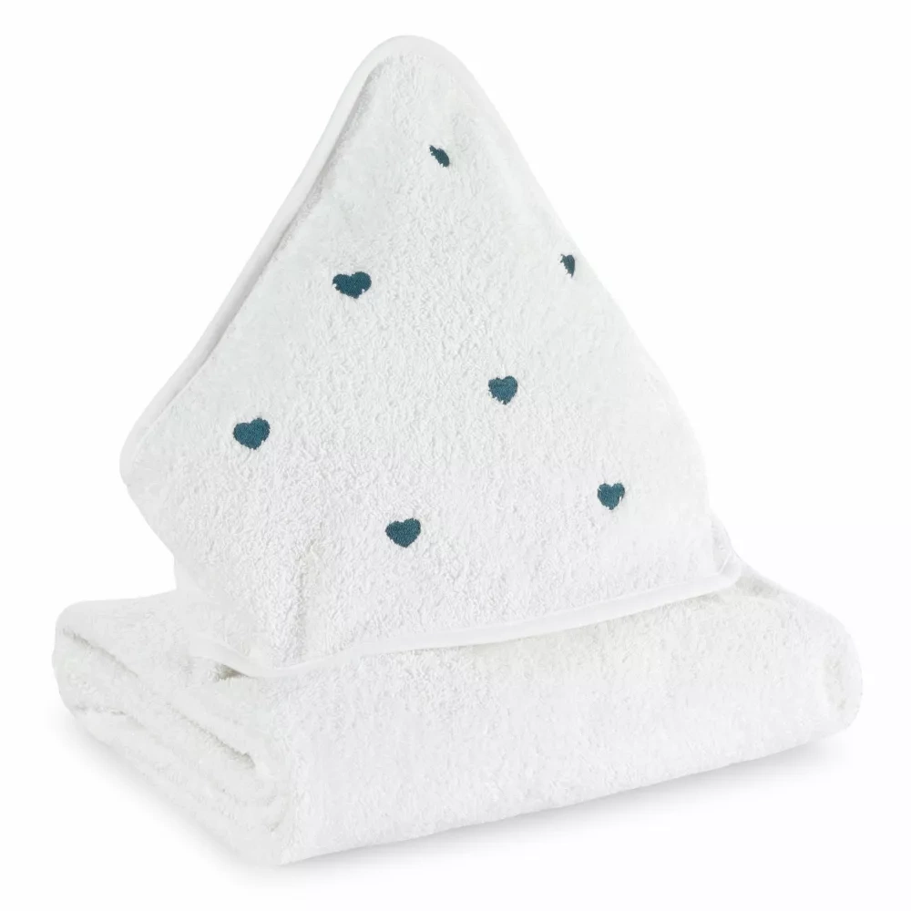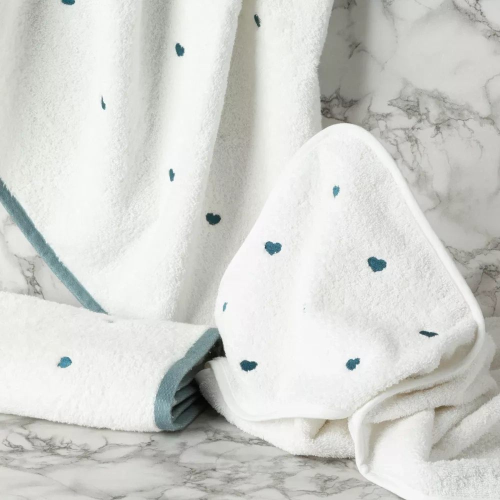 Baby 58 Serca niemowlęce okrycie kąpielowe Eurofirany biały/niebieski