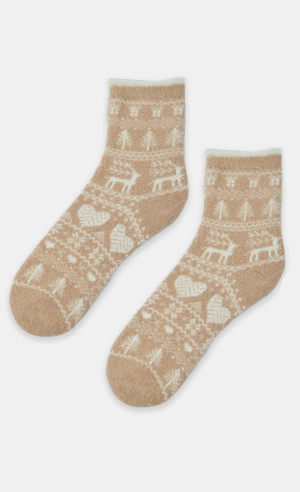 SB091 Skarpety damskie Świąteczne Noviti beżowy