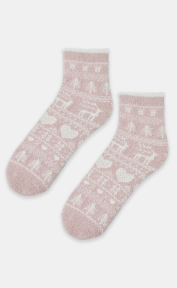 SB091 Skarpety damskie Świąteczne Noviti różowy