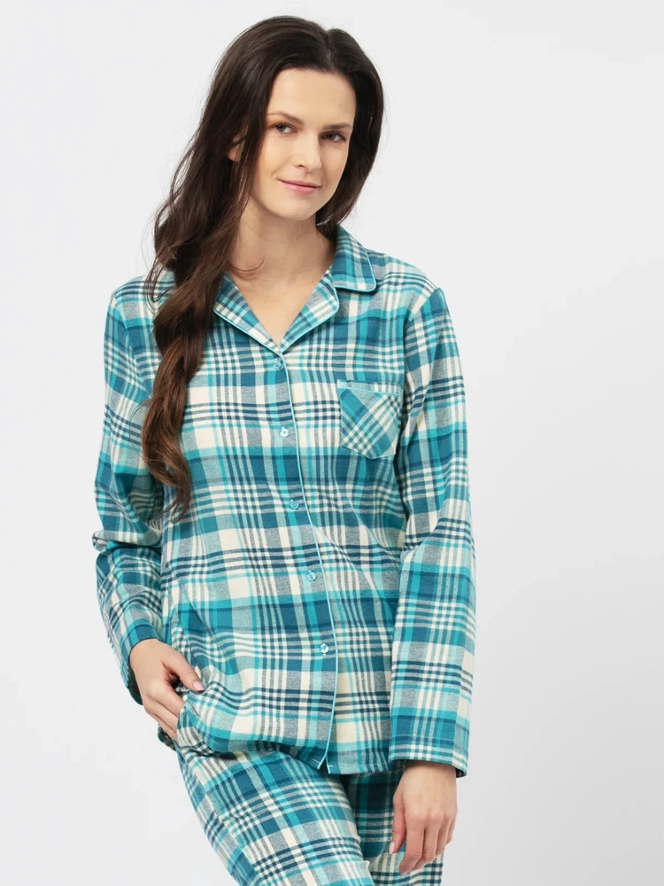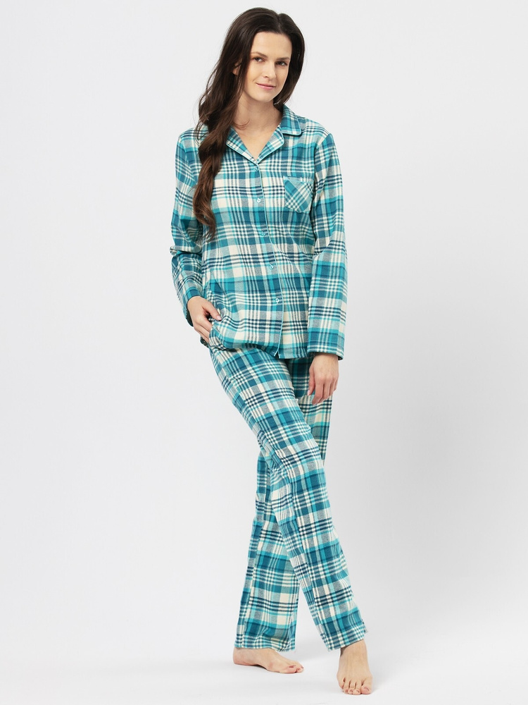 LNS 471 Flanela Bawełniana Piżama Damska Key - niebieski