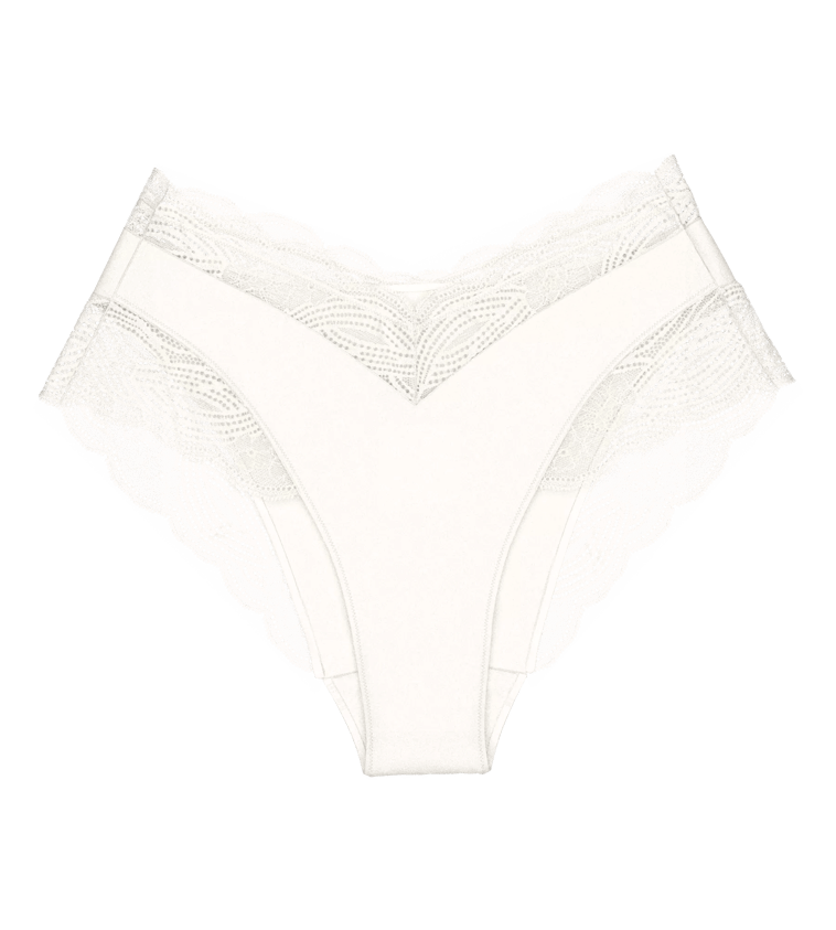 Majtki typu maxi o dużej powierzchni krycia. Otulająca ciało elastyczna koronka podkreśla kształty, zapewniając miękkość w kontakcie ze skórą. Podkreślający sylwetkę krój gwarantuje nieskazitelny wygląd.