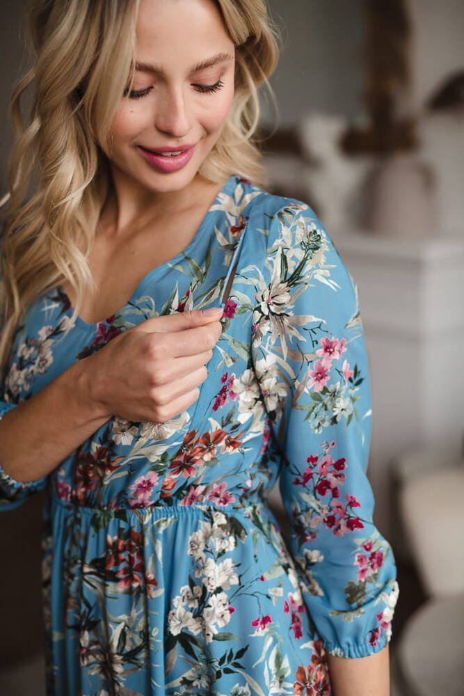 Lovely Dress Midi Milk&Love sukienka ciążowa i do karmienia błękitna w kwiaty