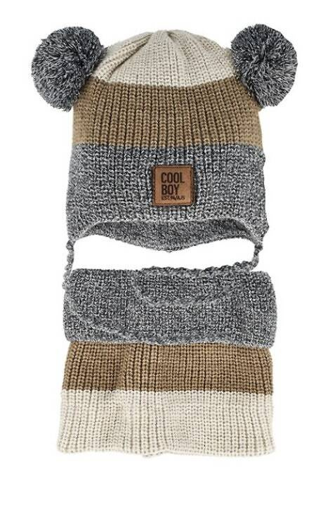 Dwuwarstwowy komplet chłopięcy z dwoma pomponami. Do kompletu golf. Idealny na chłodne dni